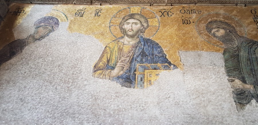 중세 미술에서 제일 대표적인 성소피아 성당 벽화입니다.