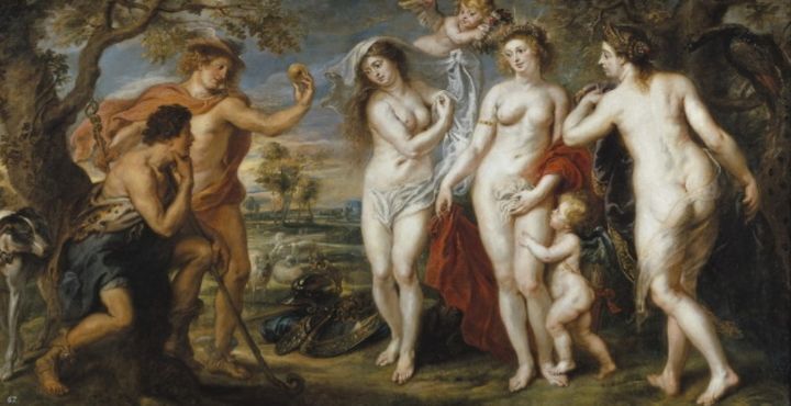 파리스가 목동처럼 앉아 있는데 세 여인이 유혹을 하죠.