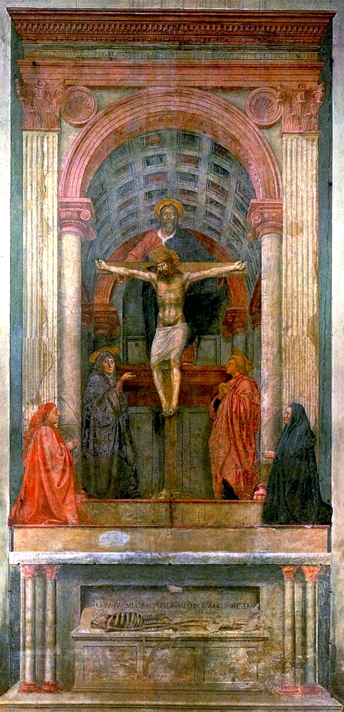 마사초의 제일 대표적 작품, 성삼위일체(피렌체, 산타마리아노벨라성당)라는 작품입니다.