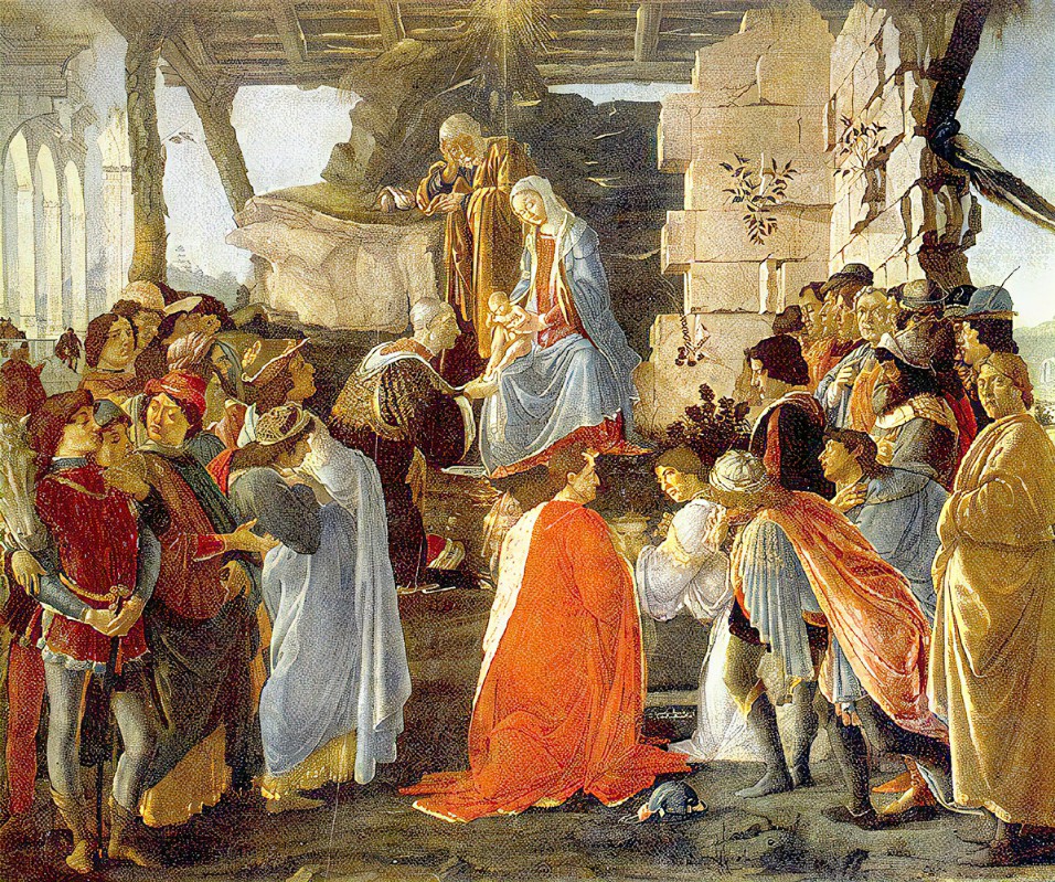 뒤에서 배울 보티첼리의 동방박사의 경배입니다. 옷을 보면 유대교 시절의 기원전후 옷이 아닙니다.
