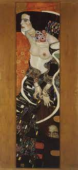 더 키스로 유명한 구스타프 크림트도 유디트를 그렸습니다. 이야기의 서술, 역동성, 현실성이 없습니다. 현대 미술의 특징, 어떤 상징만 남습니다. 오른쪽 아래로 잘린 목을 들고 있습니다. 그리고 가슴을 드러내고 있습니다. 이해할 수가 없습니다.