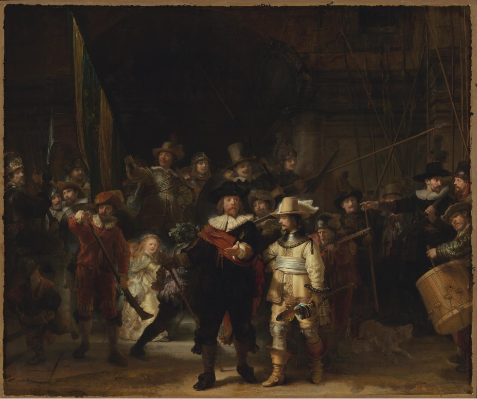 램브란트의 대표작 야경꾼은 사실은 후대에 잘못 붙여진 이름입니다. 원래는 낮을 그렸는데 물감이 변질되고 채색이 변해서 깜깜해졌습니다. 원래는 낮경꾼입니다.