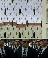 골콘다는 인도의 한 지방 이름인데, 현대 사회는 복제가 가능한 사회다. 중절모 쓴 사람이 마구 떨어지는 겁니다.