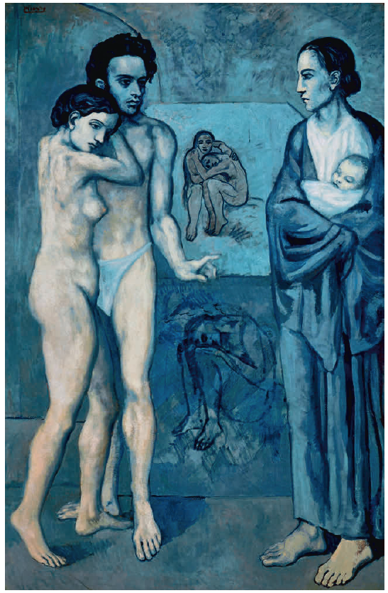 젊었을 때 초기에 그린 그림을 보면 친구들도 죽고, 잡지사도 망해고 해서 가난한 사람들을 많이 그렸습니다. 프랑스에서 가난하게 살 때를 청색시대라고 하는데 그림도 청색이 많이 돕니다. 차가운 느낌이 있습니다.